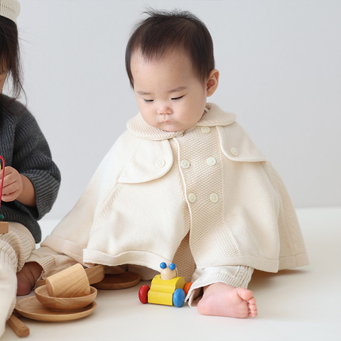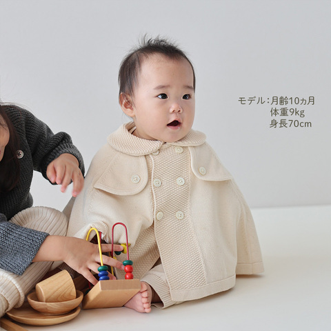 トレンチコートのイメージをベビー服に落とし込んだ、かっこよくて愛らしいケープをお作りしました。 きちんと感もあるのでお出かけにもぴったり。