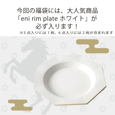 「eni リムプレート ホワイト 1枚」と他の商品が2点がセットになった合計3点の福袋となります