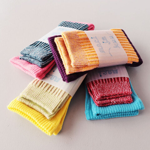「meri ja kuu (メリヤクー)」より、遊び心あるバイカラーのデザインが印象的なアームウォーマーのご紹介です。