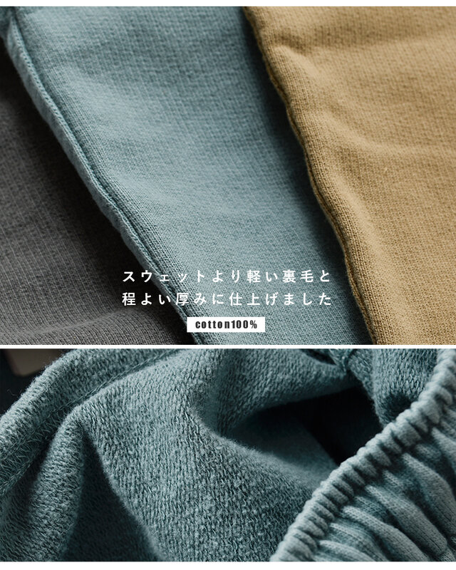 定番スウェットよりもワンランク軽い裏毛素材を使用しています。裏起毛も軽く施されており、程よい厚みでロングシーズン活躍するパンツです。