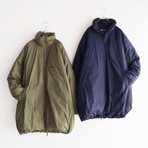 ロング丈とは思えない軽さが際立つ「Marmot(マーモット)」のダウンコートです。