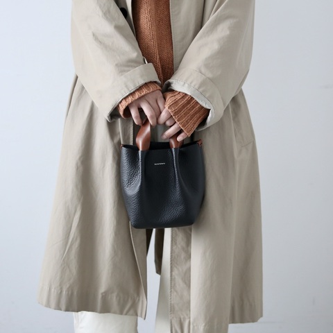 胴体とハンドルで色や素材の違うレザーを使用することで、シンプルさの中にブランドらしいアクセントを効かせた印象的なデザインになっています。