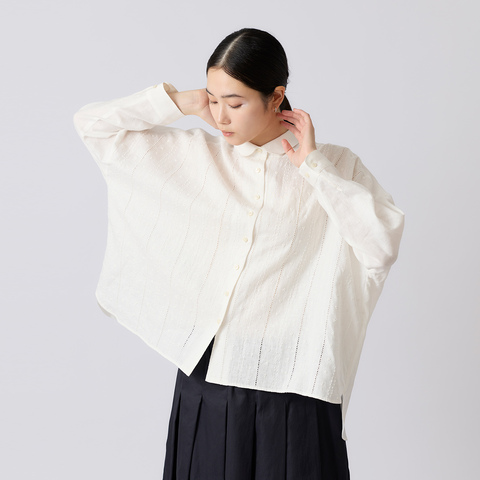 光を受けてさりげなく浮かび上がる模様が、装いにやわらかな華やぎを添えています。