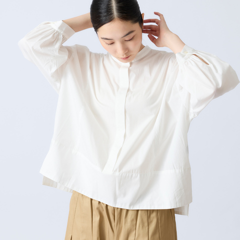 袖口には細かいギャザーを施し、やわらかく女性らしい印象に仕上げています。