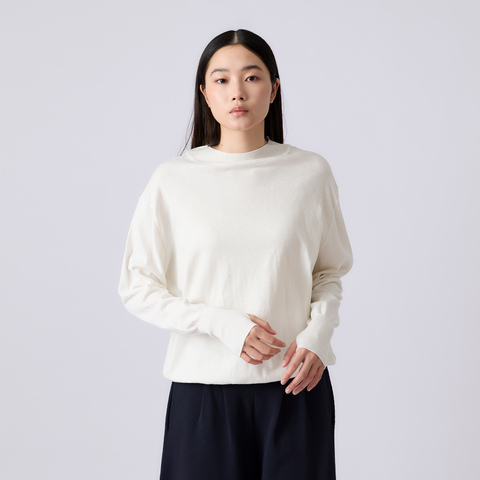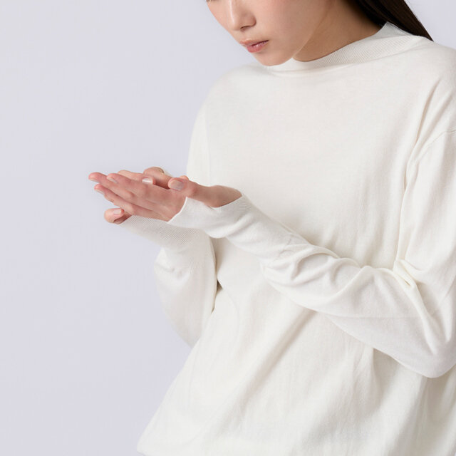 長めのリブ袖にフィンガーホールをあしらい、手元にニュアンスを。