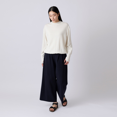 首元に自然になじむモックネックで、顔まわりをすっきり上品に見せます。