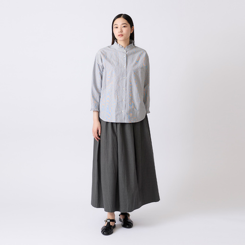 深みのある落ち着いたチャコールグレー。メンズライクな仕立てをより引き立て、シックで洗練された雰囲気を演出します。淡色ボトムとのコントラストも美しく、スタイリングを引き締めてくれる一枚。