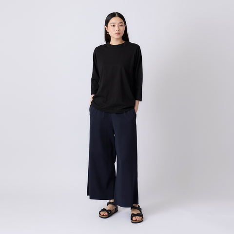 裾にはゆとりを持たせて、脚のラインを拾いにくいストレートシルエットに仕上げました。