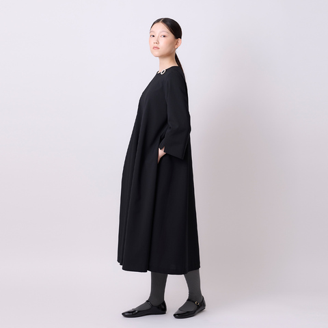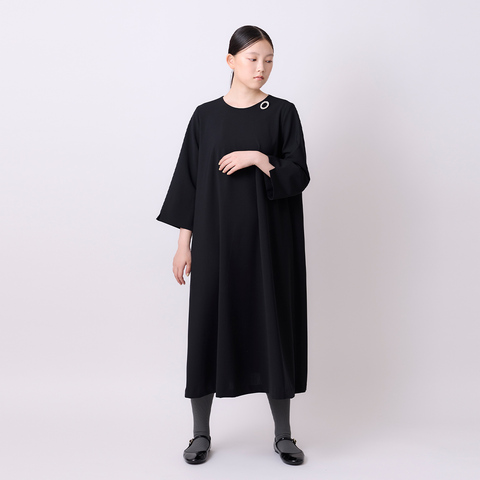 ストンと落ちるシルエットで、体のラインを拾いにくく、すっきりと上品な印象に。
