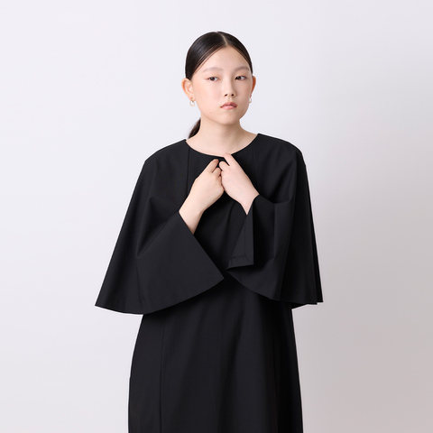 ケープは肘下にかかる丈感で、ほどよい肌見せが叶います。