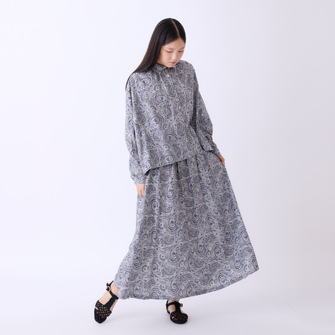 高密度できめ細かいペイズリーは1970年代にプリントされたリバティのアーカイブデザインからインスピレーションを得ました。葉と羽の様なペイズリーが波打つような動きを醸し出します。