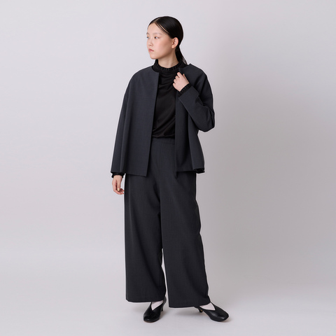 深みのあるコン、シンプルなデザインに奥行きをプラス。きちんと感がありながらも、やさしい雰囲気で着こなせる一色です。