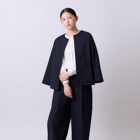 袖丈は8分丈で、インナーのブラウスやワンピースとのレイヤードも楽しめます。