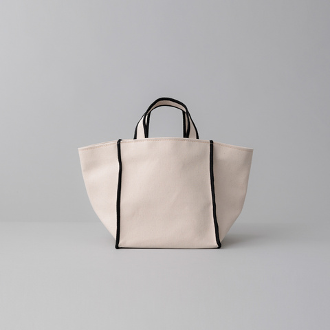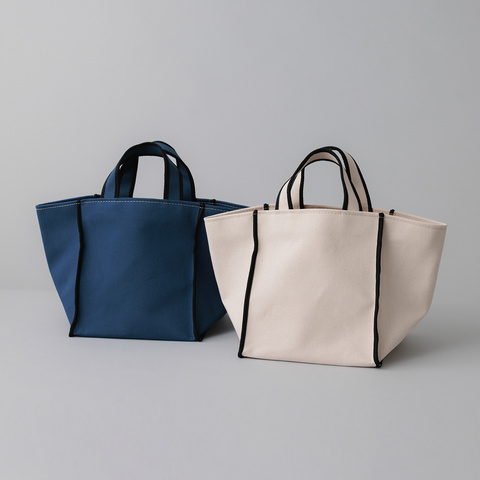 台形に広がるフォルムが印象的な、すっきりと洗練されたトートバッグ。