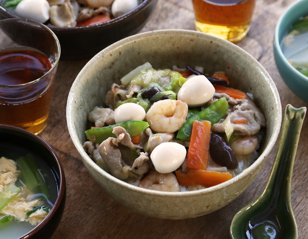 艶のある丼に、鮮やかな色合いの中華丼がよく似合っています。ほかにもローストビーフ丼や魯肉飯(ルーローハン)など和食以外の丼も似合いそうです。