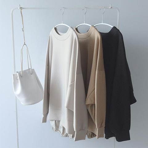 身幅のゆったり感に合わせて、袖もゆとりのあるドルマンスリーブになっており、全体的に柔らかい印象に。