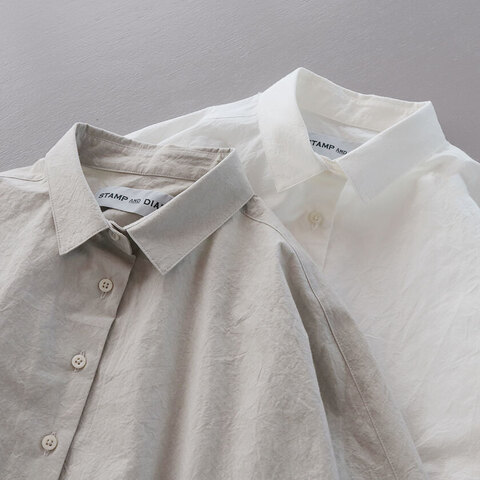 洗いざらしたような自然な風合いがこなれた雰囲気を醸し出すSTAMP AND DIARY (スタンプアンドダイアリー)のビッグシャツのご紹介です。