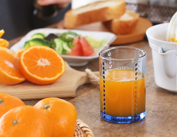 絞りたてのフレッシュな生ジュースもちょうど良いグラスです。