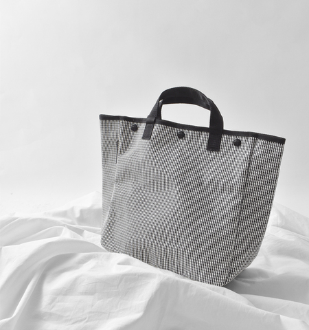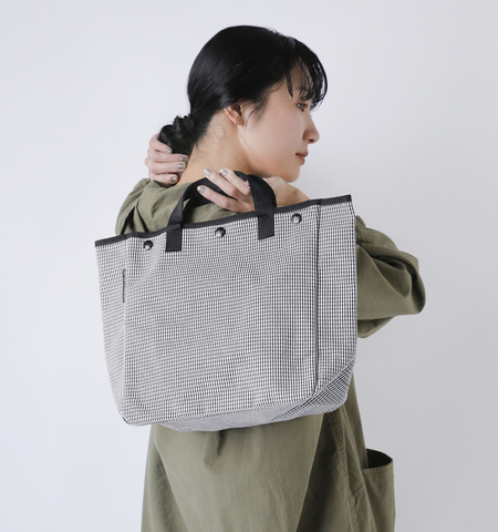 BAG’n’NOUN(バッグンナウン)より、千鳥格子 トートバッグ Sサイズ “HOUNDSTOOTH/S”をご紹介します。人気モデル”HOMES”より千鳥格子柄のHOMES「HOUNDSTOOTH」が登場しました。先染め糸を使った千鳥格子柄の6号帆布は厚手のネルシャツのように日焼けや色落ちに強く堅牢度の高いファッション業界的にも珍しい生地です。トラッドな雰囲気でありながら、ブラックのハンドルやパイピングでカジュアルだけでなく、セットアップやジャケットスタイルにも合わせていただけます。やや小ぶりなSサイズは普段使いやサブバッグとしてもオススメです。