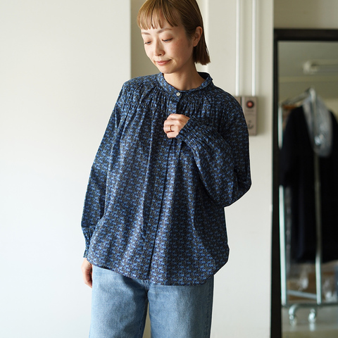 「 LIBERTYタナローンチ衿シャーリングブラウス 」