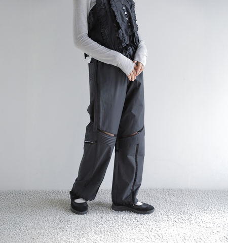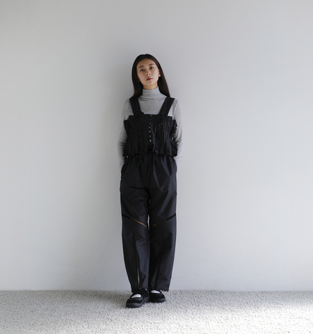 軽やかさとフェミニンを纏う、ラッフルディテールのコットンパンツ