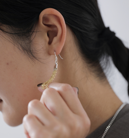 シルバーとゴールド、2つのカラーがそれぞれ異なる表情を見せ、カジュアルからきれいめまで幅広いコーデにマッチ。日本製ならではの丁寧なつくりも魅力の、日常を華やかに彩るピアスです。