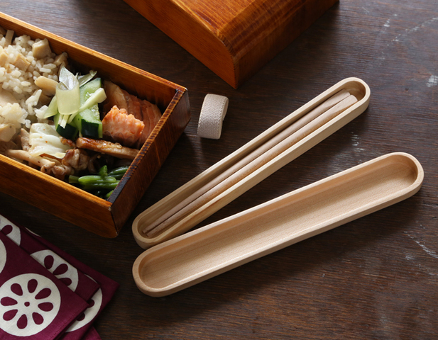 ぴったりとサイズの合う箸ばこ(別売り)もあります。曲げわっぱなど木製のお弁当箱によく似合い、どんな柄のお弁当包みにもマッチして見栄えもばっちりです。