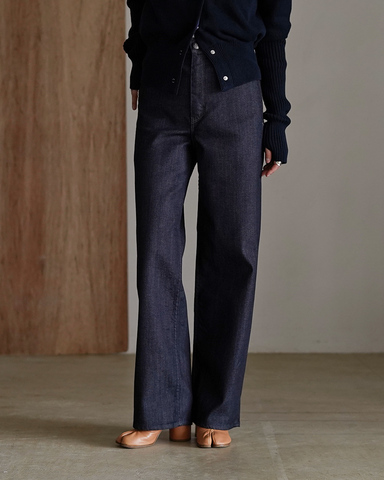 ヤヌークらしい計算されたシルエットと素材選びが、毎日のデニムスタイルを品よく更新してくれる一本です。