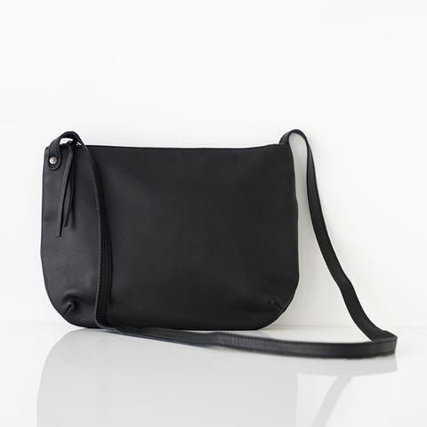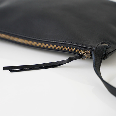 柔らかな牛革を使用し、マチを作らずダーツで膨らみを出しています。