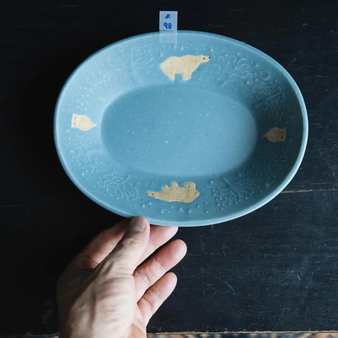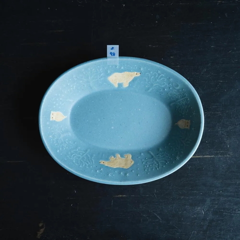 よしざわ窯|ブルーグレー森のくまの楕円鉢