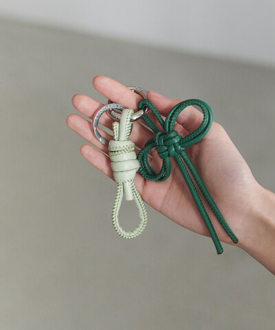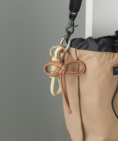 高級感と耐久性を併せ持つクローム鞣しの牛革紐を使い、職人の手で一本一本丁寧に結ばれたチャーム。