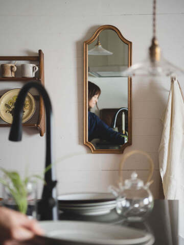 横幅はスリムな28cm。限られたスペースでの設置も可能です。玄関先やキッチンでさっと身だしなみを確認したり、インテリアとして取り入れるのがおすすめ。お部屋に優しい印象を与えてくれます。