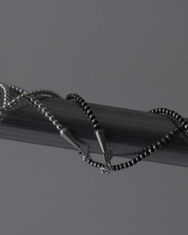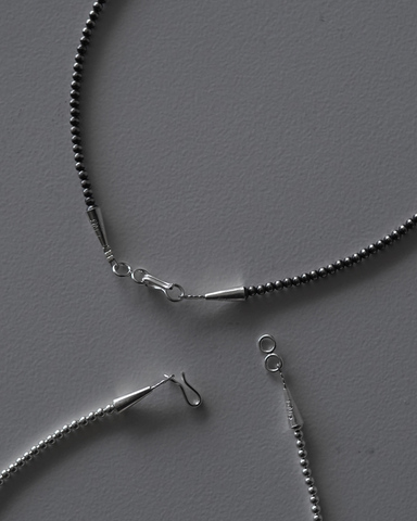 半球状のシルバーを一つひとつ繋ぎ合わせて生まれるナバホパールは、現代では機械製が主流となっていますが、ERICKA NICOLAS BEGAYは、手作業で行うインゴットシルバーにこだわり制作しています。