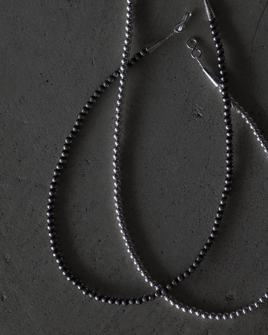 半球状のシルバーを一つひとつ繋ぎ合わせて生まれるナバホパールは、現代では機械製が主流となっていますが、ERICKA NICOLAS BEGAYは、手作業で行うインゴットシルバーにこだわり制作しています。