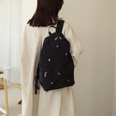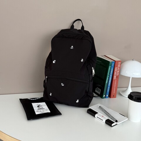 小さなパンダの刺繍が散りばめられた、軽量・撥水リュック