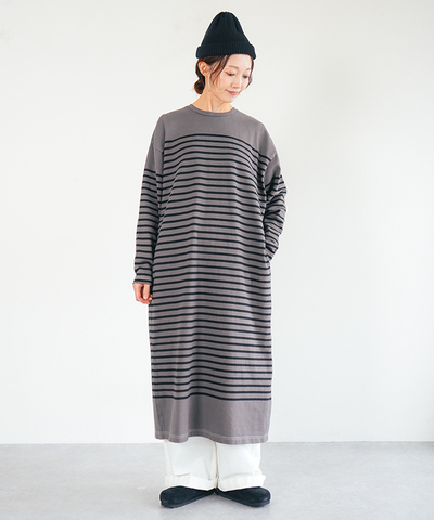 Gymphlex|コットンタイプライター バンドカラー 長袖 ワンピース gy-g0107otd-kr
