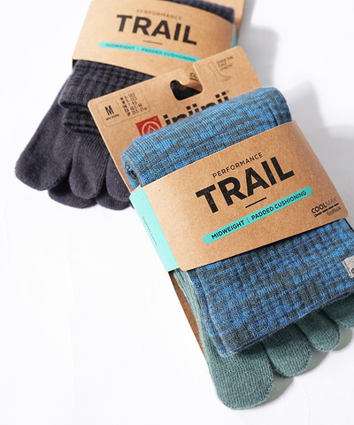 ・インジンジのランニングソックスのラインナップの内、未舗装の悪路や岩場での使用を想定して設計された「トレイルシリーズ」の一足。