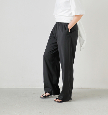 ウエストゴム仕様でリラックスした穿き心地ながら、素材の上質さと計算されたボリュームで、ラフすぎない洗練された雰囲気が楽しめる一枚です。
