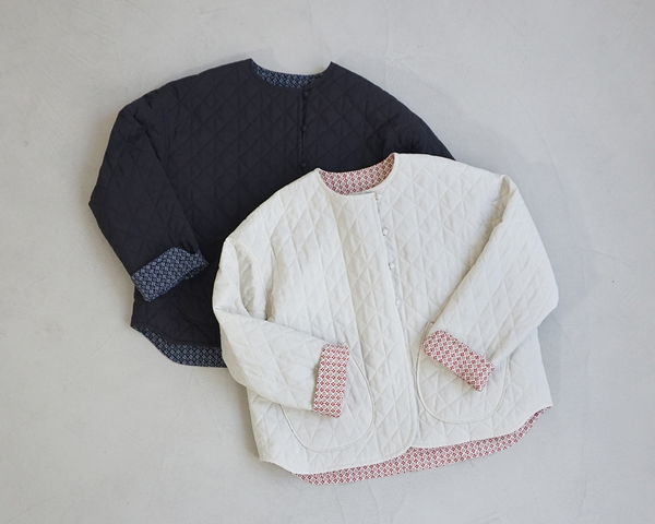 RINEN|オーガニック天竺 ダイヤキルティング ノーカラー ジャケット r17612-kr