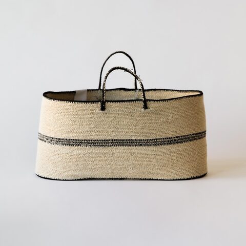 天然素材のシーグラスで編み上げた、やさしい雰囲気のバスケットです。ナチュラルカラーをベースに、さりげなく入ったラインや縁取りがポイント。片付けながらお部屋のおしゃれなアクセントにもなる、“見せる収納”におすすめです。