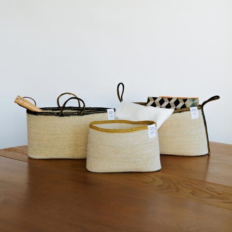 インドの職人さんがによるハンドメイド。一点一点、手仕事ならではの温かみを感じられるクラフトバスケットです。