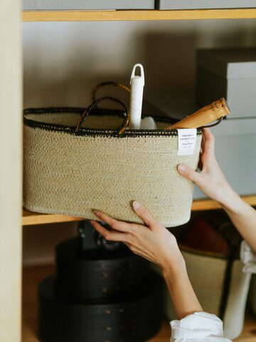 ナチュラルなバスケットは、四角四面になりがちな収納シーンに、抜け感をつくってくれます。
