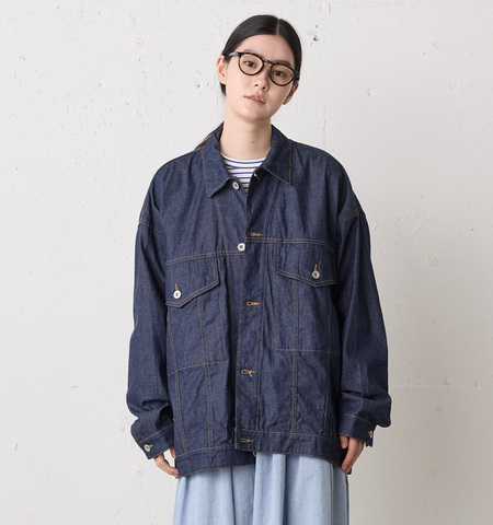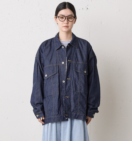 8ozのライトオンスデニムを使用したワイドシルエットのデニムジャケット。