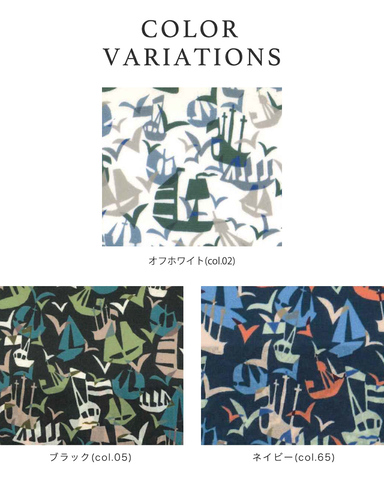sosotto別注の、春夏の装いに映えるヨット柄SETSAILのLIBERTYプリントを使用したブラウス。日常のスタイルにほどよい華やかさを添え、柄物を上品に楽しみたい方にこそ手に取っていただきたい一枚です。