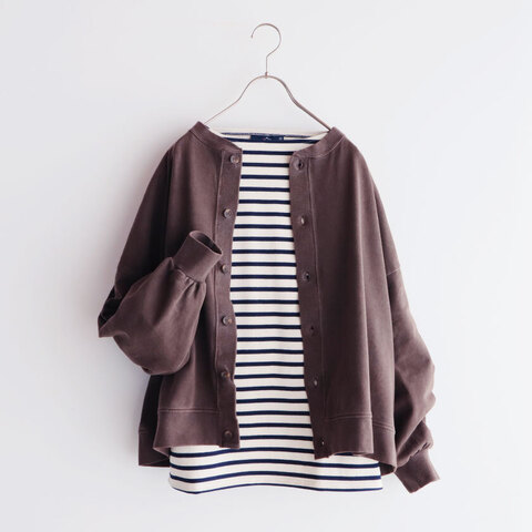 ヴィンテージライクな染め加工を施したスウェットカーディガン