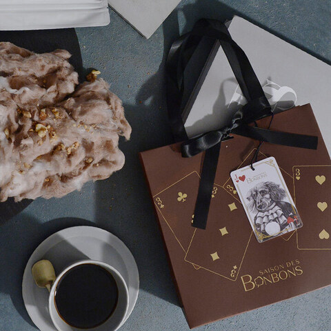 パッケージには豪華な衣装をまとった動物たちをデザイン。「革命わたあめを手に、大富豪を夢見る楽園の動物たち」というテーマのもと、カードゲームの「Revolutionary Career Porker(大富豪)」がモチーフになっています。
