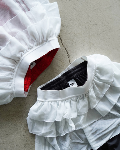 スポーツウェアの機能美を起点に、今の空気感に寄り添うフェミニニティを重ねたトラックパンツ。