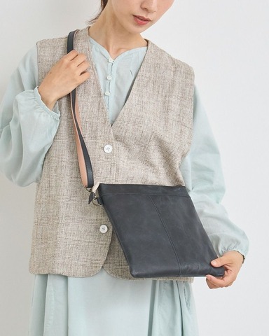 見た目はすっきりスリム、約260gととても軽いので、毎日持ちたくなる心地よさ。触れた瞬間に「さらっと気持ちいい」と感じられる、しっとりしたやわらかな革を使っています。薄型だけれど長財布がきちんと収まる実用的なサイズで、肩かけ、斜めがけでも身体に自然とフィットしてくれます。 「今日は荷物少なめで軽やかに過ごしたい」そんな日にぴったりのいいとこ取りショルダーバッグです。