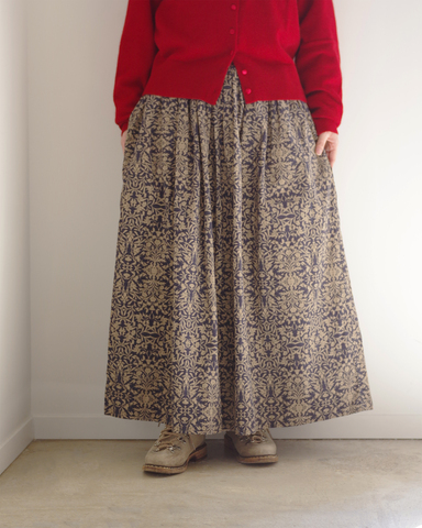 クラシカルな花柄が深みあるコーデュロイスカート。