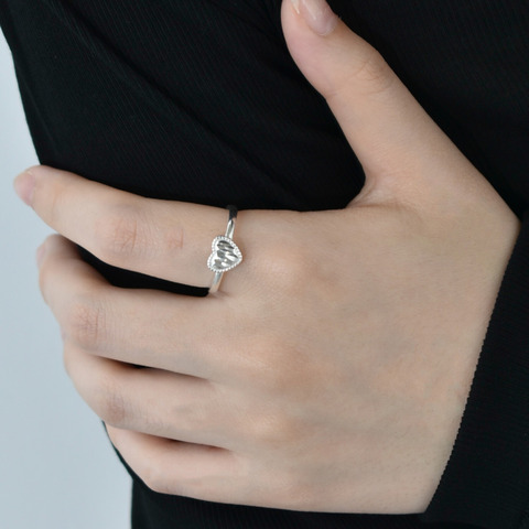 カットが美しいハートモチーフを小さな装飾で縁取ったリング。